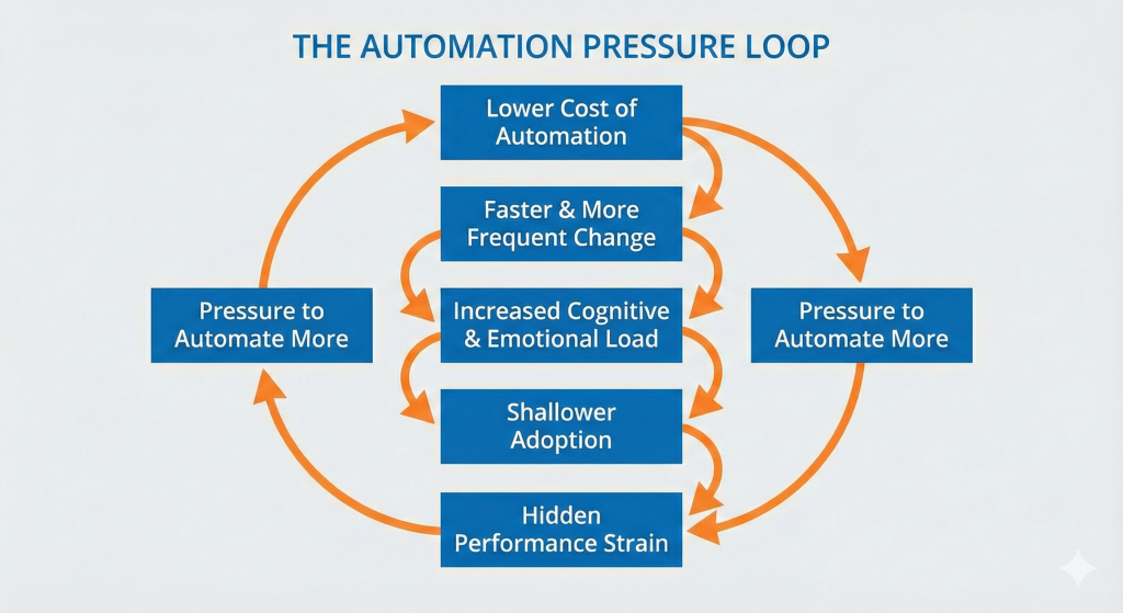 This is the paradox many organizations are now living inside: as automation improves, adoption often becomes harder, not easier. Until leaders name that paradox clearly, they will continue to push on the wrong levers.